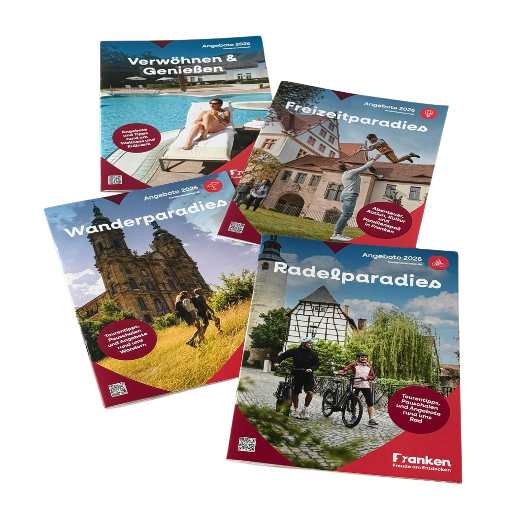 Die thematischen Angebotsbroschüren des Tourismusverbandes Franken – bisher als "Themenzeitungen" bekannt – erscheinen seit 2026 in einem neuen Format und unter neuem Namen. Die bisherigen Zeitungen im DIN-A3-Format wurden durch handlichere DIN-A4-Broschüren ersetzt. Damit werden sie insbesondere bei Messeauftritten und im Rahmen der Franken-Touren noch besser einsetzbar.